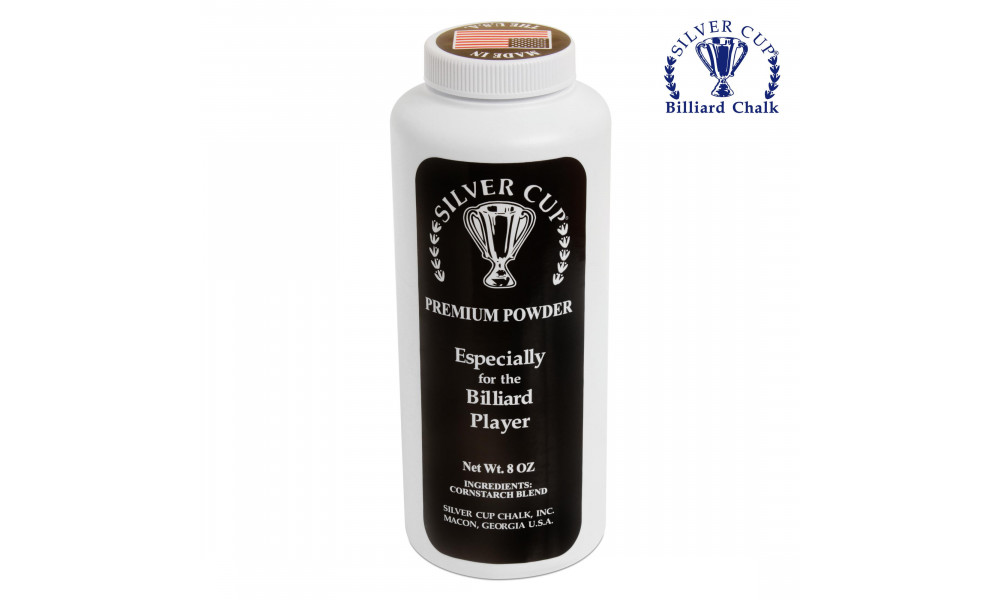 Пудра бильярдная для рук Silver Cup Premium Powder производится в США давно и хорошо зарекомендовавшей себя одноименной компанией Silver Cup Chalk, Inc., работающей на рынке бильярдных аксессуаров с 1990 года.